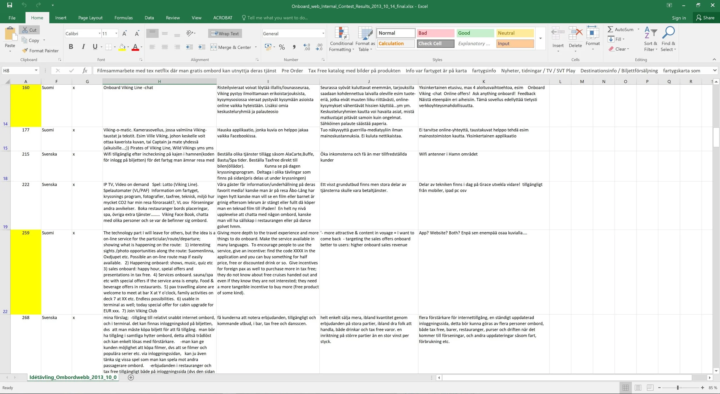 Using the Excel sheet created from the internal contest, we discussed with Viking Line to identify the key touchpoints where we want the users' input.