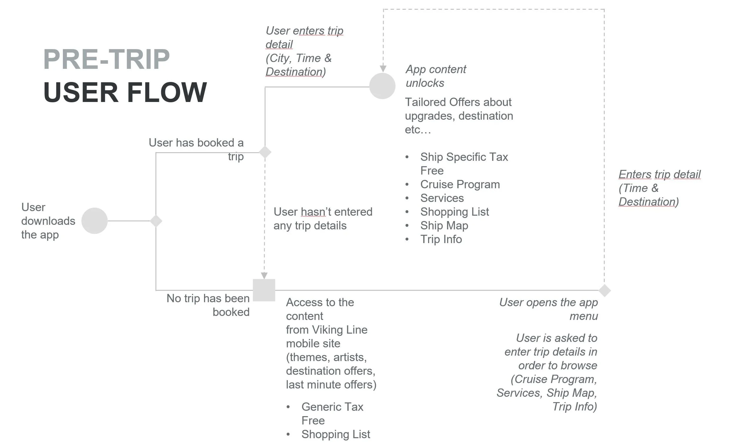 In order to make the app work, we needed to create a map of what works on-board, what works when the user has a trip booked and trip is approaching and what works when the user doesn't have a trip booked.